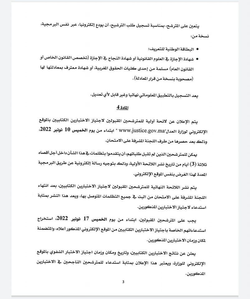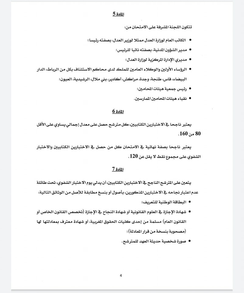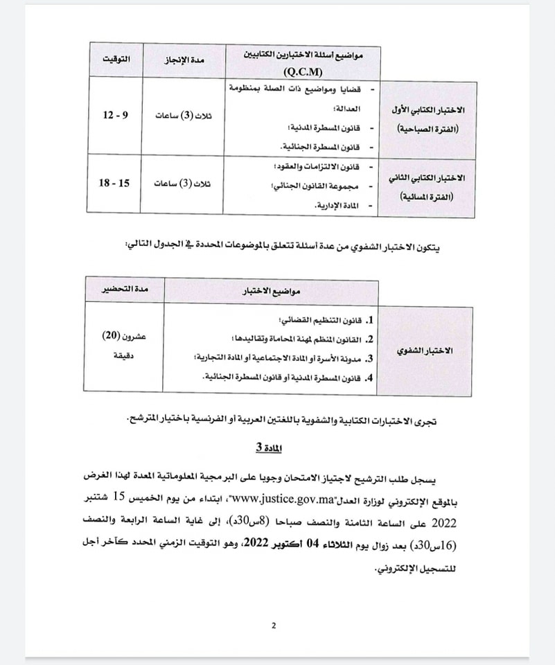 الإعلان عن موعد الامتحان الخاص بمنح شهادة الأهلية لمزاولة مهنة المحاماة