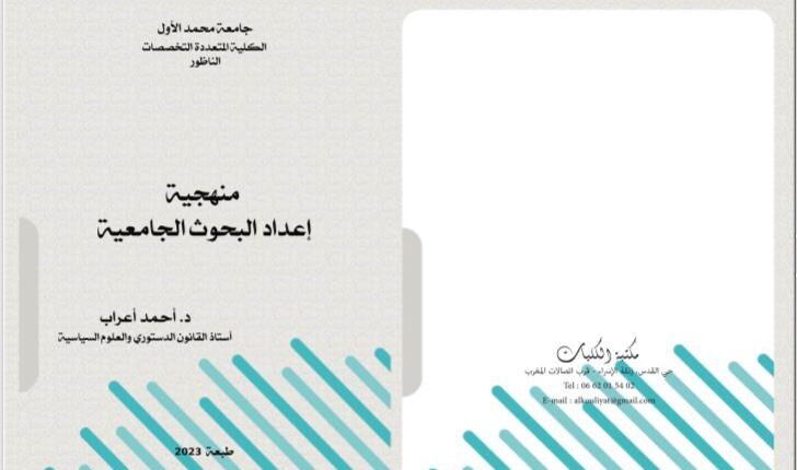 صدر حديثا، للدكتور “أعمد أعراب” أستاذ التعليم العالي بالكلية متعددة التخصصات بالناظور، مؤلف علمي حول منهجية إعداد البحوث الجامعية. كتاب بمثابة دليل عملي يرصد جميع الخطوات المنهجية التي يحتاجها الباحث لإنجاز بحثه، ليتجاوز بموجبه العديد من الصعوبات التي تعترض سبيله العلمي، بدءا من المخاوف التي تساوره أثناء المفاضلة بين المواضيع للاختيار حتى آخر محطة ينهي بها الباحث رحلته البحثية.