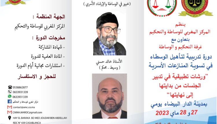 إعلان: “دورة تكوينية متخصصة في الوساطة الأسرية” بالدار البيضاء يومي: 27-28 ماي 2023