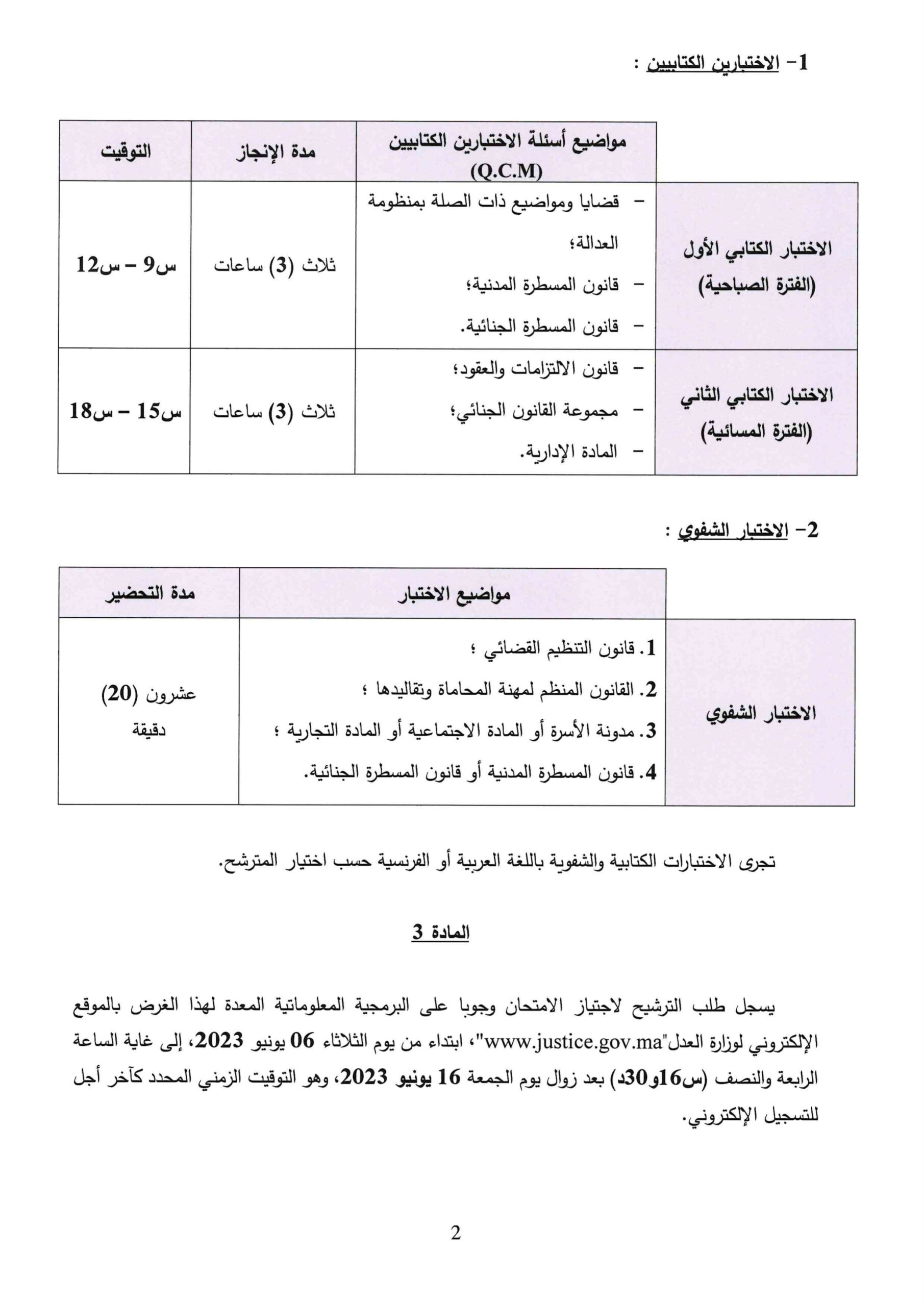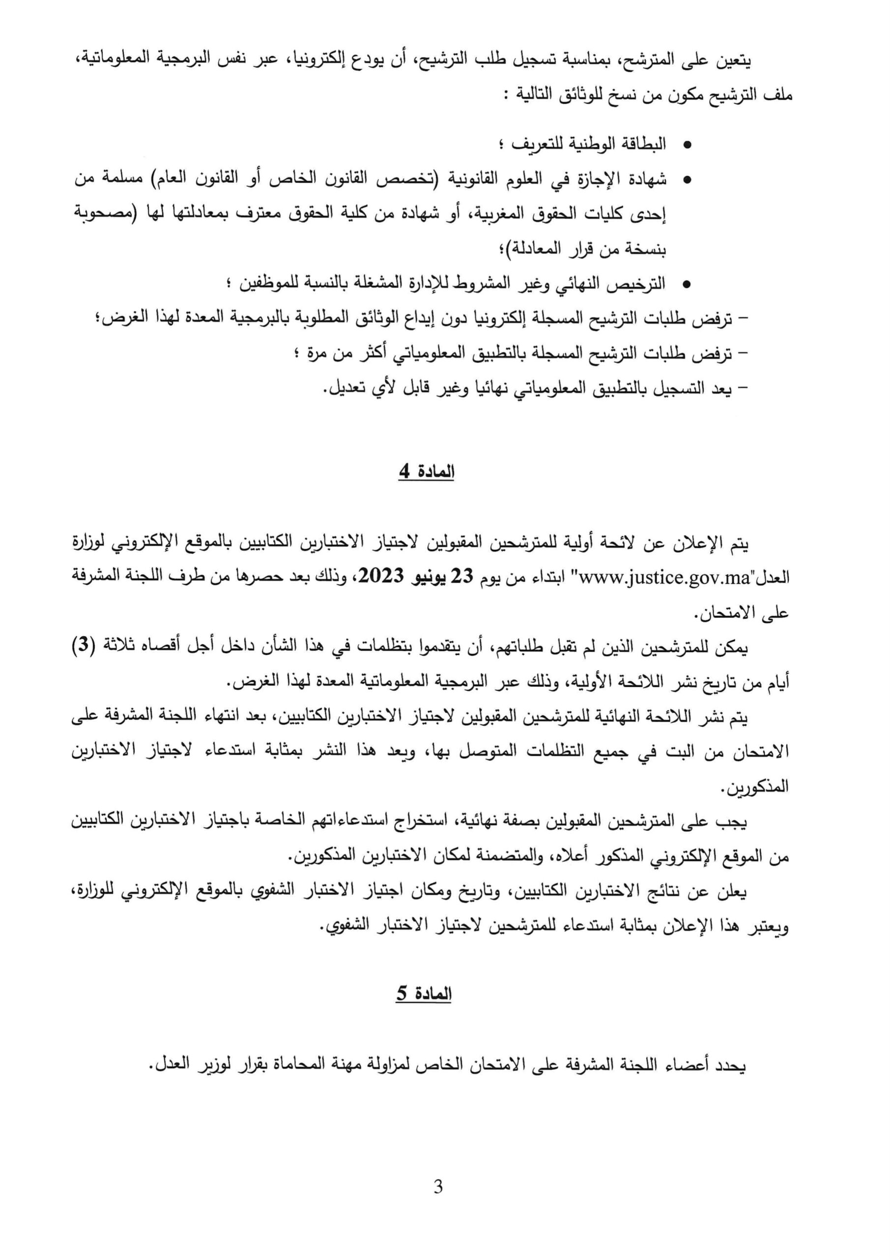 إعلان: امتحان جديد لمزاولة مهنة المحاماة 2023 (قرار وزير العدل) آخر تحديث يونيو 6, 2023 شارك FacebookTwitterGoogle+ReddItWhatsAppPinterestالبريد الإلكتروني