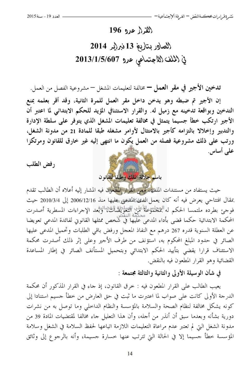 في قرار حديث، أيدت محكمة الاستئناف الحكم الابتدائي القاضي بمشروعية فصل أجير تم ضبطه وهو يدخن داخل مقر العمل للمرة الثانية، رغم علمه المسبق بمنع التدخين. اعتبرت المحكمة أن الفعل المرتكب يشكل خطأً جسيماً لمخالفته تعليمات المشغل التي تدخل ضمن سلطته في الإدارة والتدبير، مما يبرر إنهاء علاقة الشغل دون تعويض.
