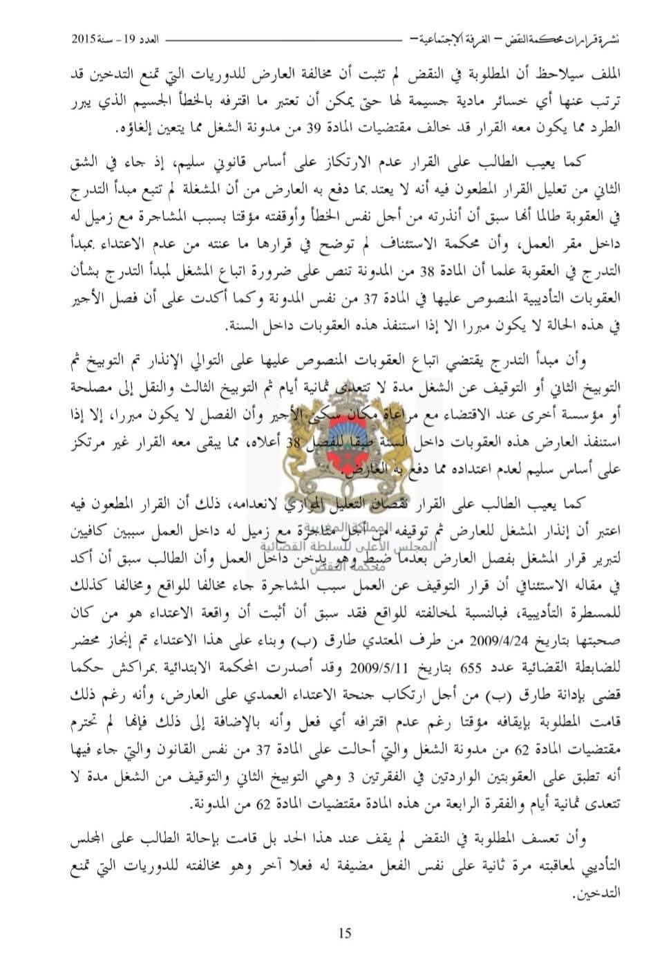 مخالفة تعليمات منع التدخين في العمل خطأ جسيم يستوجب الفصل
