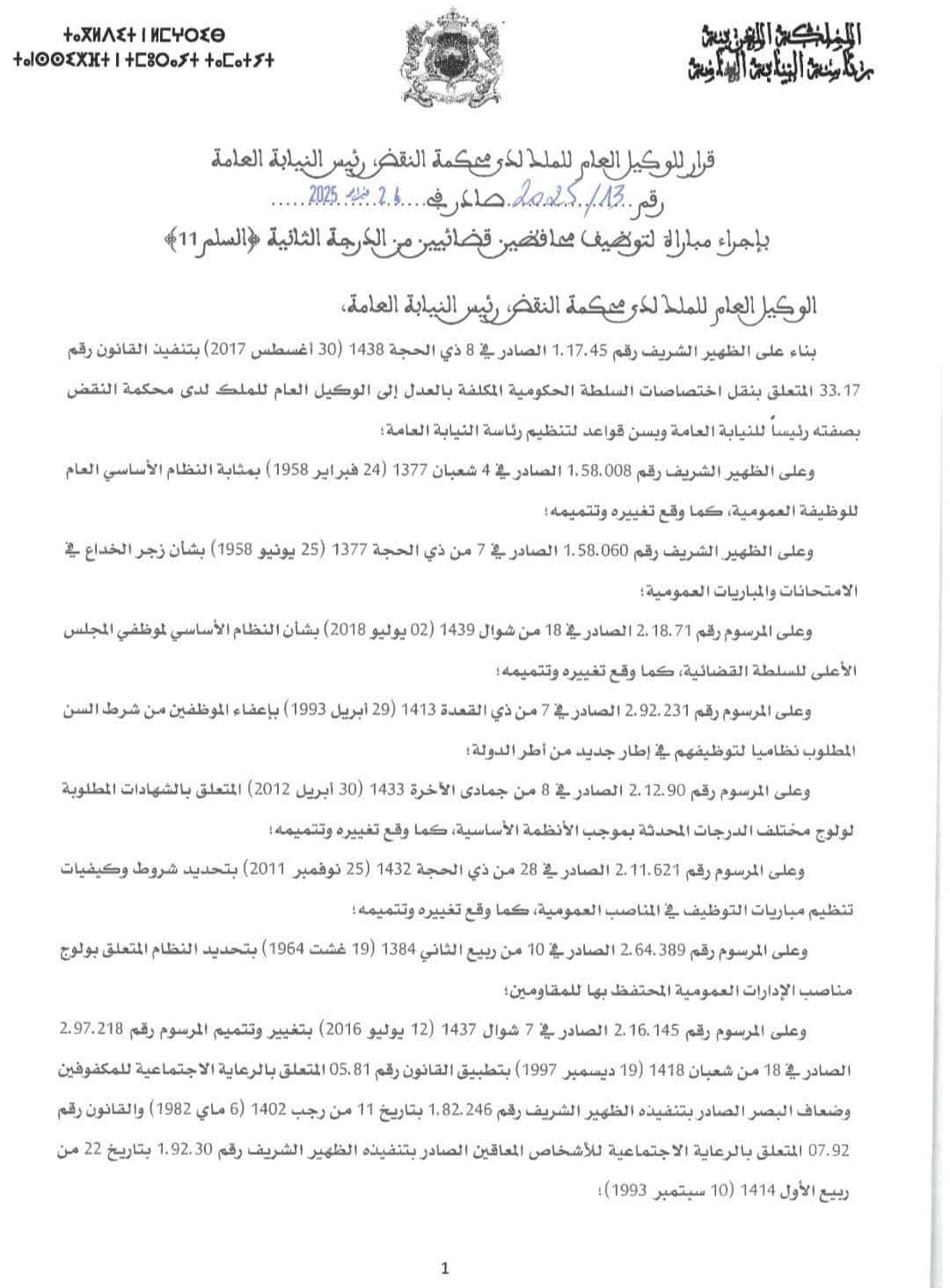 الاعلان عن مباراة المحافظين القضائيين برئاسة النيابة العامة