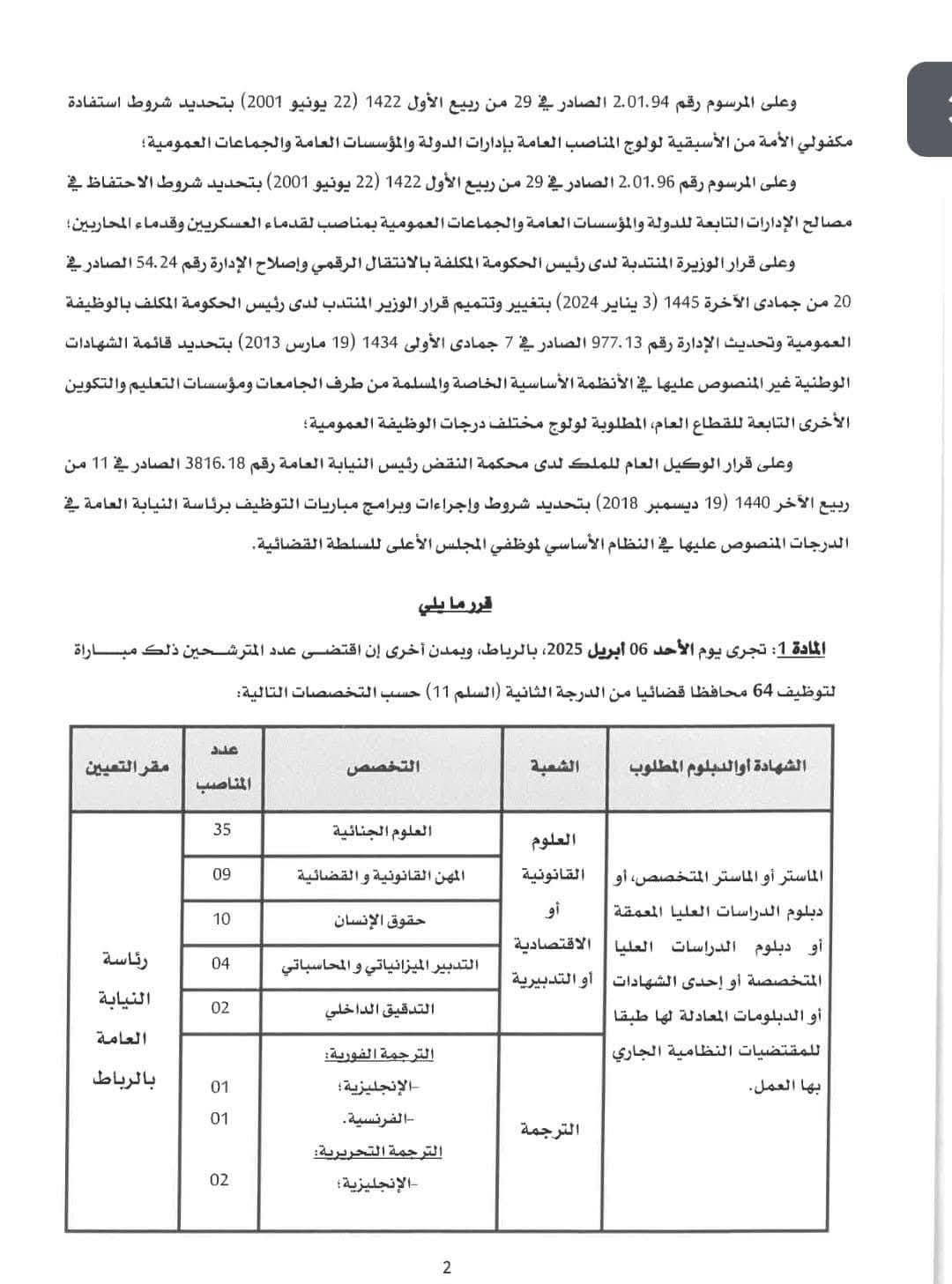 ●عدد المناصب: 54.