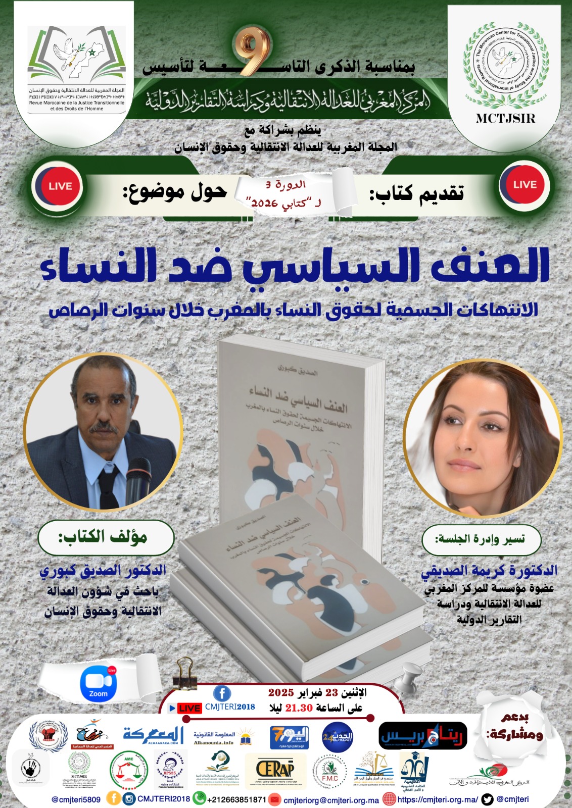 ويأتي هذا اللقاء العلمي لتقديم ومناقشة مؤلف الدكتور الصديق كبوري، المتخصص في شؤون العدالة الانتقالية، والموسوم بـ “العنف السياسي ضد النساء: الانتهاكات الجسيمة لحقوق النساء بالمغرب خلال سنوات الرصاص“، حيث يشكل الكتاب مادة مرجعية رصينة تستعرض الخصوصيات الجندرية للانتهاكات الحقوقية وتفكك آليات العنف السياسي في التجربة المغربية المعاصرة.