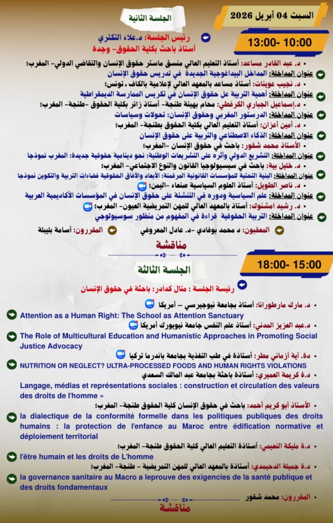 ومن المرتقب أن تخلص أشغال المؤتمر إلى توصيات عملية تعزز التربية على حقوق الإنسان كمدخل أساسي لبناء مجتمع ديمقراطي قائم على الكرامة والمساواة.